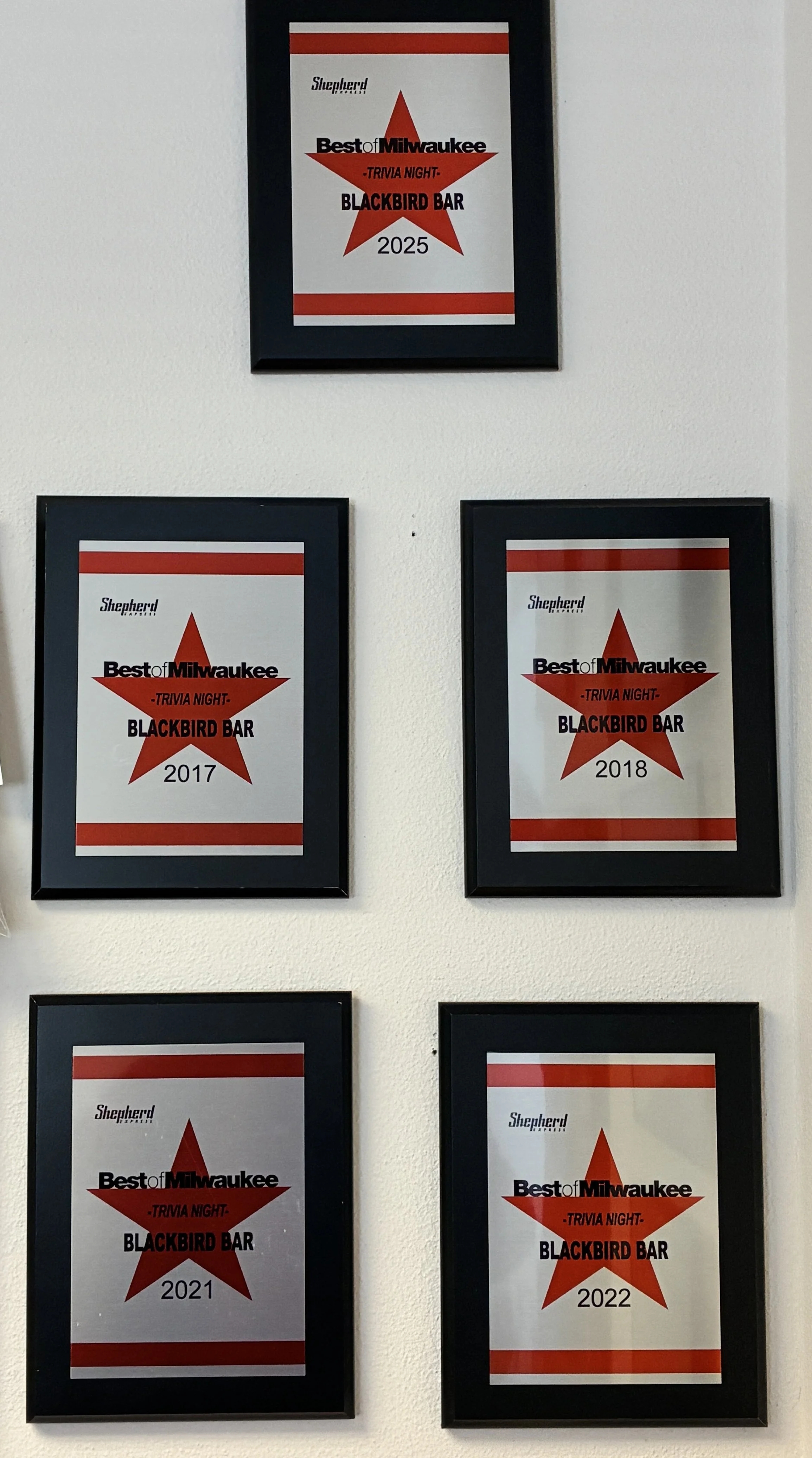 Blackbird Thursday Team trivia is Bay View’s popular home-grown, independent pub quiz. The Quiz has been nominated annually as one of Shepherd Express' "Best of Milwaukee," the longest-running reader’s choice contest in our fair city.